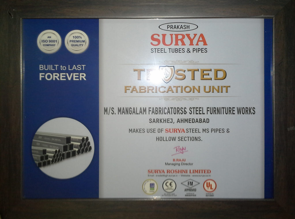 Only Managalm Fabricators & Steel Furniture Works is a Combine solution of modern technology machine work with high- Skilled hand works. We provide a skill full handwork job where machine work is impossible, especially in bending, rounding and shaping the product. Thus, we make impossible work possible by our hand skill work experience.